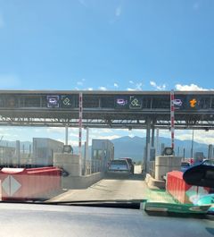 Nach ca. 1 Stunde die erste Mautstation. Wir wurden automatisch am Kennzeichen erkannt und durften 3,50 € zahlen. Kreditkarte ist auf dem Handy gespeichert, diese an den Automaten gehalten und die Schranke ging auf. Super! Auf der Nebenspur ( t-Spur mit Box ) rauschen die Autos nur so durch ohne groß abzubremsen... Scheint aber zu funktionieren... Die Schranke erkennt die Boxen offensichtlich sehr schnell und geht auf!