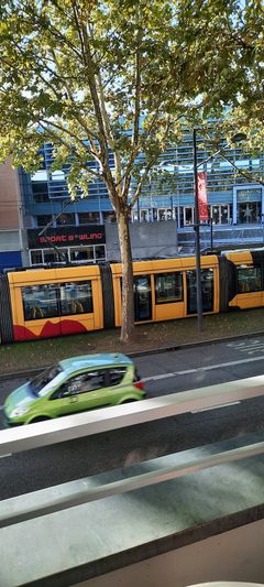 Aber Hunger haben wir... Und wenn die Schnulpe Hunger hat, ist sie schnell etwas schlecht gelaunt. Also... kurze Trockenphase abgewartet und ab zu Michel. Montpellier hat (wahrscheinlich) wunderschöne kleine Gassen, aber wir haben diese nur erahnt, so stark hat es geregnet. Irgendwann fanden wir uns auf dem Marktplatz in einer Fußgängerzone mitten auf den Gleisen der Tram wieder. Opa Zug war nun doch etwas angespannt... Aber nur kurz... Man kann ja schließlich auch auf den Gleisen durch die Fußgängerzone wieder zurückfahren!