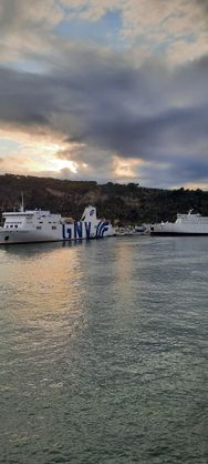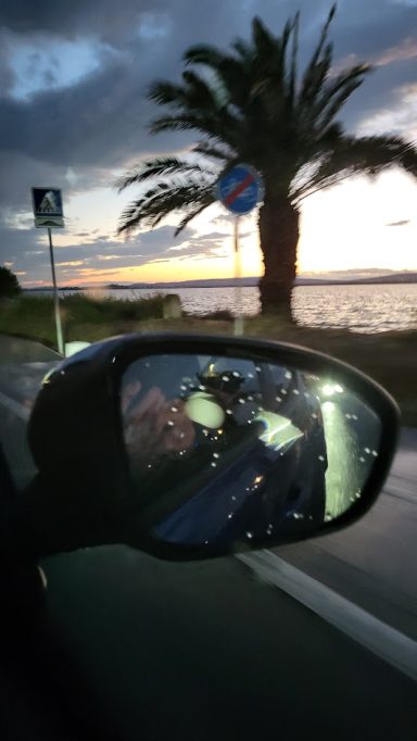 Dort haben wir noch über eine halbe Stunde bei milden 25Grad unter Pinien und Zypressen draußen gesessen und dem beginnenden Sonnenuntergang über dem Meer zugeschaut. Das war Entspannung pur!!! 1. War die Lage dort wirklich einmalig, 2. Wussten wir, dass wir nur noch ca. 30 Minuten fahren und dann dürfen wir endlich auf die Fähre!!