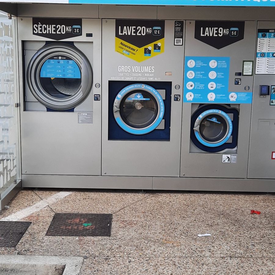 Waschmaschinen auf dem Parkplatz einer französischen Raststätte. Cool!!