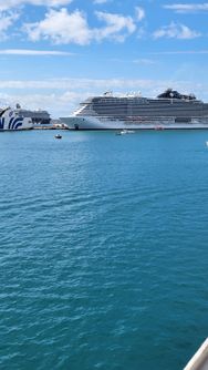 Die Pfelfe bringt mir einen Kaffee und wir gehen noch für eine halbe Stunde an Deck, um das Anlegemanöver nicht zu verpassen. Es ist noch dunkel, aber die Insel liegt schon erleuchtet vor uns... Ich bin hundemüde und mir ist schwindelig. Die Tablette hat zwar über Nacht offensichtlich gut gewirkt, tut es wohl aber noch immer...