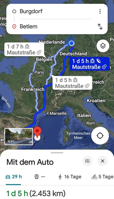 Für die 1667 km bis Barcelona und knapp 17 Std Autofahrt haben wir 3 Tage eingeplant. Geht bestimmt auch an 2 Tagen, aber die Schnulpenoma fährt allein. ( Opa sagt, das war der Deal. Ich hätte ihm das versprochen. Kann ich mich zwar nicht mehr dran erinnern, aber gut... dann fahr ich eben durch. )