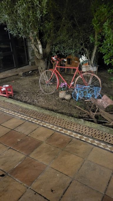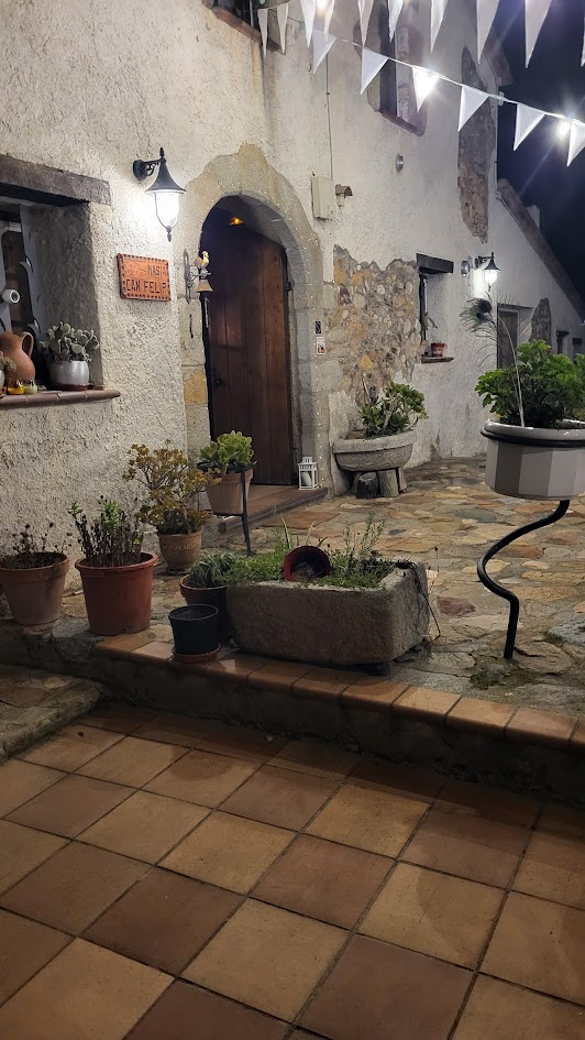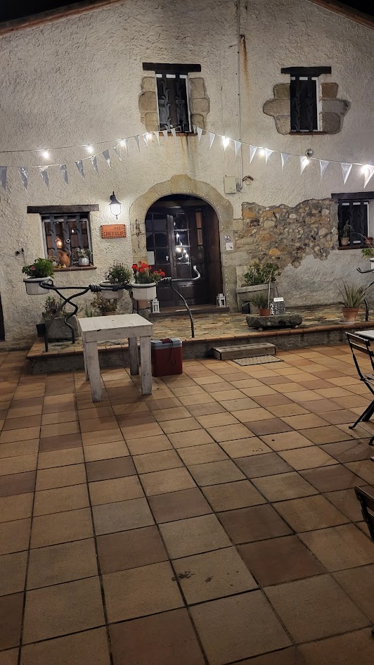 Jetzt aber schnell weiter. 1. ist es noch nicht ganz 20:00 und wir müssten den Michel rein theoretisch noch registrieren lassen. und 2. wollen wir bis spätestens 21:00 in Sant Joan de Sanata sein. Ca. 45 Minuten vom Hafen Barcelonas entfernt. Mitten in den Bergen... Da übernachten wir heute. Das Unterfangen war nochmal spannend... Der Link in der Website des Hotels war nicht korrekt - aber so haben wir den Dorfplatz mal gesehen. Sehr, sehr schön. Dann kurze Nachricht an Judit vom Can Felipa (Unser Hotel für heute Nacht) und sie hat uns den genauen Standort geschickt. 15 Minuten später und gefühlt 700 Höhenmeter weiter haben wir unser Ziel erreicht. Natürlich im dunkeln. Opa ist etwas verspannt. :-))