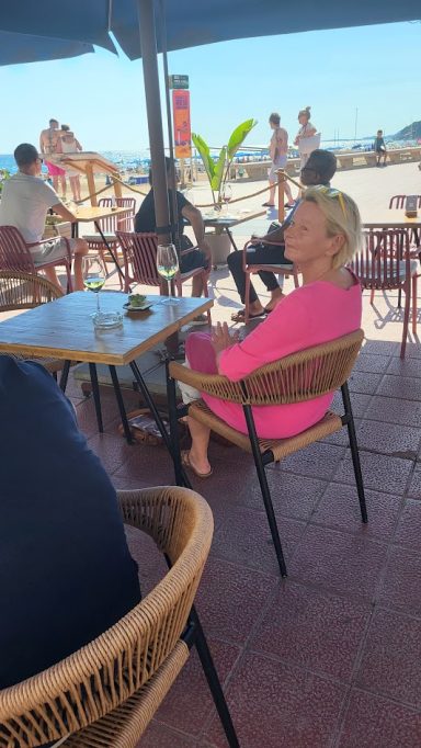 Schließlich sind wir in Lloret gegen 15.30 angekommen. Nachdem ich ein paar extrem enge Gassen (dass Michel da überhaupt durch kam, wundert mich bis heute) mit einer Steigung von gefühlt 120% gefahren bin, haben wir tatsächlich einen Parkplatz direkt am Strand ergattert. ( ca. 6 € für rund 3 Stunden ) Michel hatte Meerblick und konnte Frauen im Bikini angucken und wir haben ein wirklich nettes Strandrestaurant gefunden, wo wir gut gegessen haben. Da konnte Opa auch Frauen im Bikini angucken...