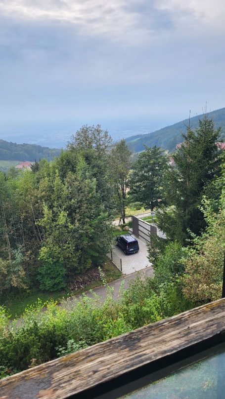 Der Blick vom Balkon auf das Tal ist der absolute Hammer! Schade, dass es sehr bedeckt war, aber so haben wir den Wald intensiver gerochen. Die Wohnung war auch ganz entzückend. Alles da, was man braucht. Sogar Kaffee und Milch war bereitgestellt. Und das Aufwachen in dem Bett mit dem Ausblick... irre!!