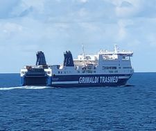 Pünktlich ging es dann los. Mit der Trasmed Grimaldi Ciudad de Palma. Die Einweiser waren echt genial!! Ganz junge Männer - aber sowas von sicher und souverän - da konnte gar nichts schief gehen! Die Autospielplätze der letzten 2 Tage waren vergessen. Hier ging es absolut strukturiert zu! Dann aufs Schiff rauf... Wieder eine Steigung von gefühlt 120%. Aber 15% waren es bestimmt wirklich...