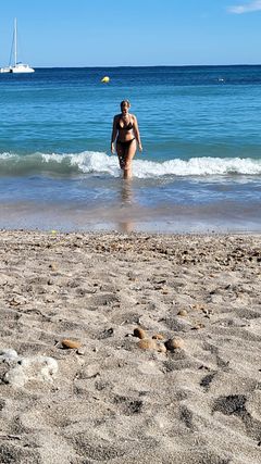 Morgens um 9:30 Uhr habe ich also Laeti vor ihrem "Wohnhotel" in Cala Bona abgeholt. Wir sind dann ein kleines Stück ihres täglichen Arbeitsweges zu Fuß gegangen! Wunderschön... immer am Meer entlang, am Yachthafen, an schicken Hotels, Cafés und kleinen Restaurants vorbei. Da es bis zum "Arbeitshotel" noch weit ist, haben wir uns für das Auto entschieden, damit ich möglichst viel von ihrer ganzen Umgebung kennen lernen kann. Ziel war also jetzt ihr Arbeitsplatz, dann eine ganz schöne Villengegend, ein nobles Restaurant mit feiner Terrasse direkt am Meer. Ich bin begeistert wie schön Cala Bona doch ist. Weiter gings zu ihrem Lieblingsstrand wo ein Cappuccino rief: "Ich warte auf euch." Tat gut und nun weiter. Wir sind die Straße immer weiter gefahren, es wurde immer steiler, die Villen immer prunkvoller, die Zufahrten zu ihnen immer abenteuerlicher! Dann war die Straße zu Ende und eine wunderbare Aussicht lag vor uns! Das Mittelmeer azurblau, der Blick über den Strand bis Cala Millor! Wir haben beide fotografiert, ich bin aber sicher... keines der Fotos kann unseren Eindruck wieder geben.